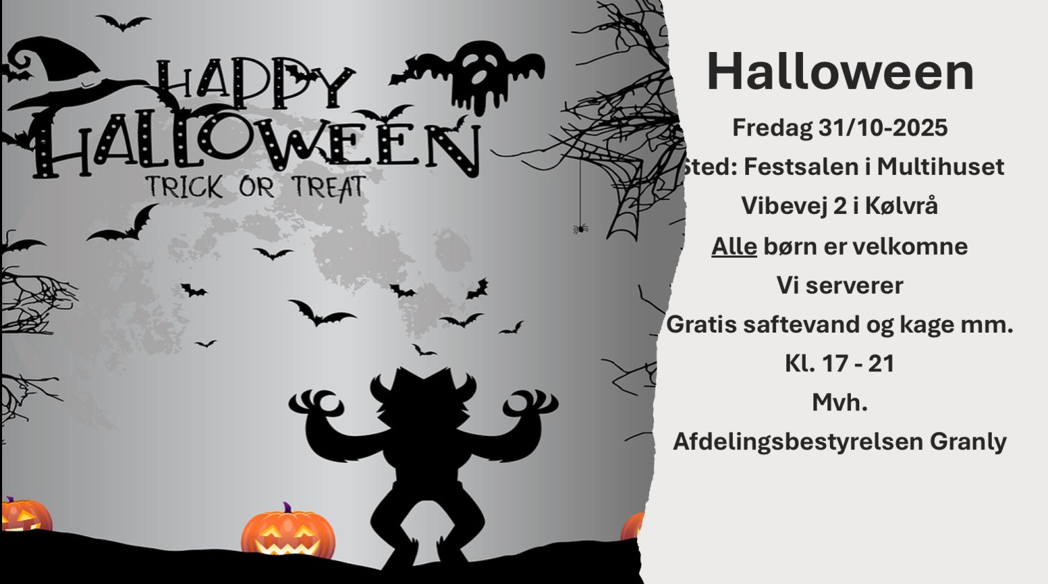 Arrangør: Afdelingsbestyrelsen for afd. 111 Granly, 112 Ringparken (Sct. Jørgen)Dato: 31. okt. 2025 17:00