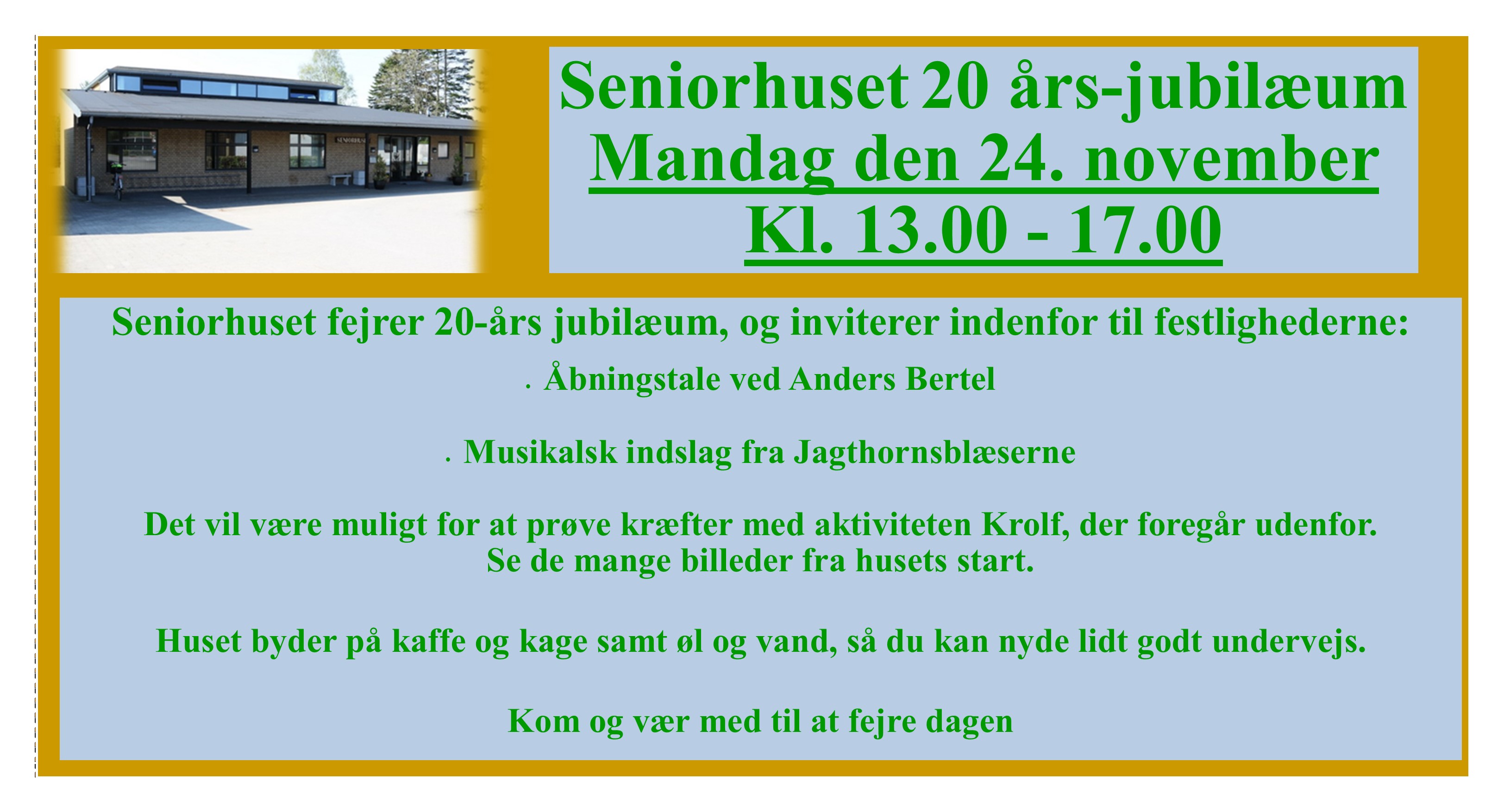 Seniorhuset fejrer 20 årsjubilæum, og inviteret indenfor til fest.