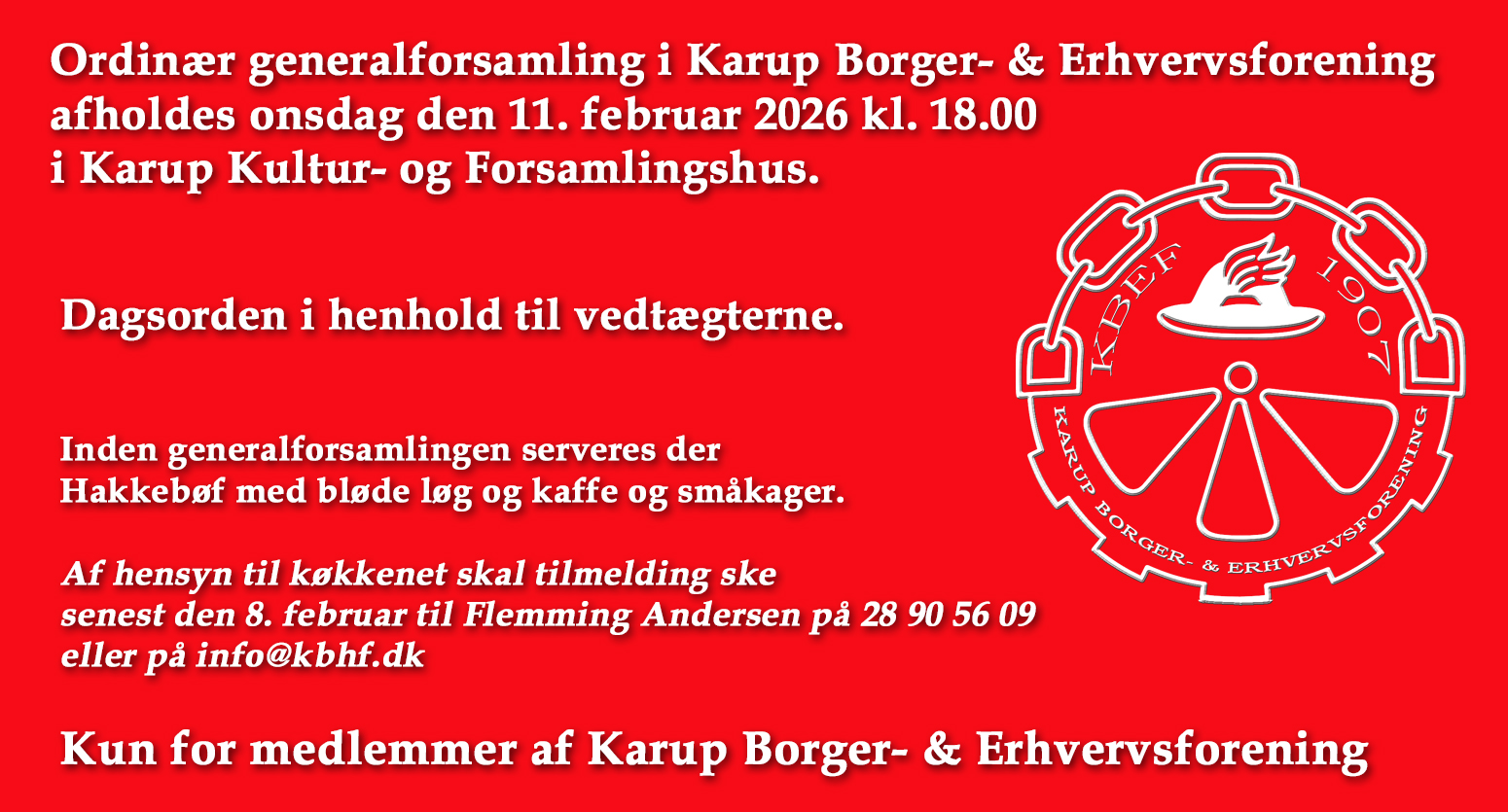 Ordinær generalforsamling i Karup Borger- & Erhvervsforening afholdes i Karup Forsamlingshus