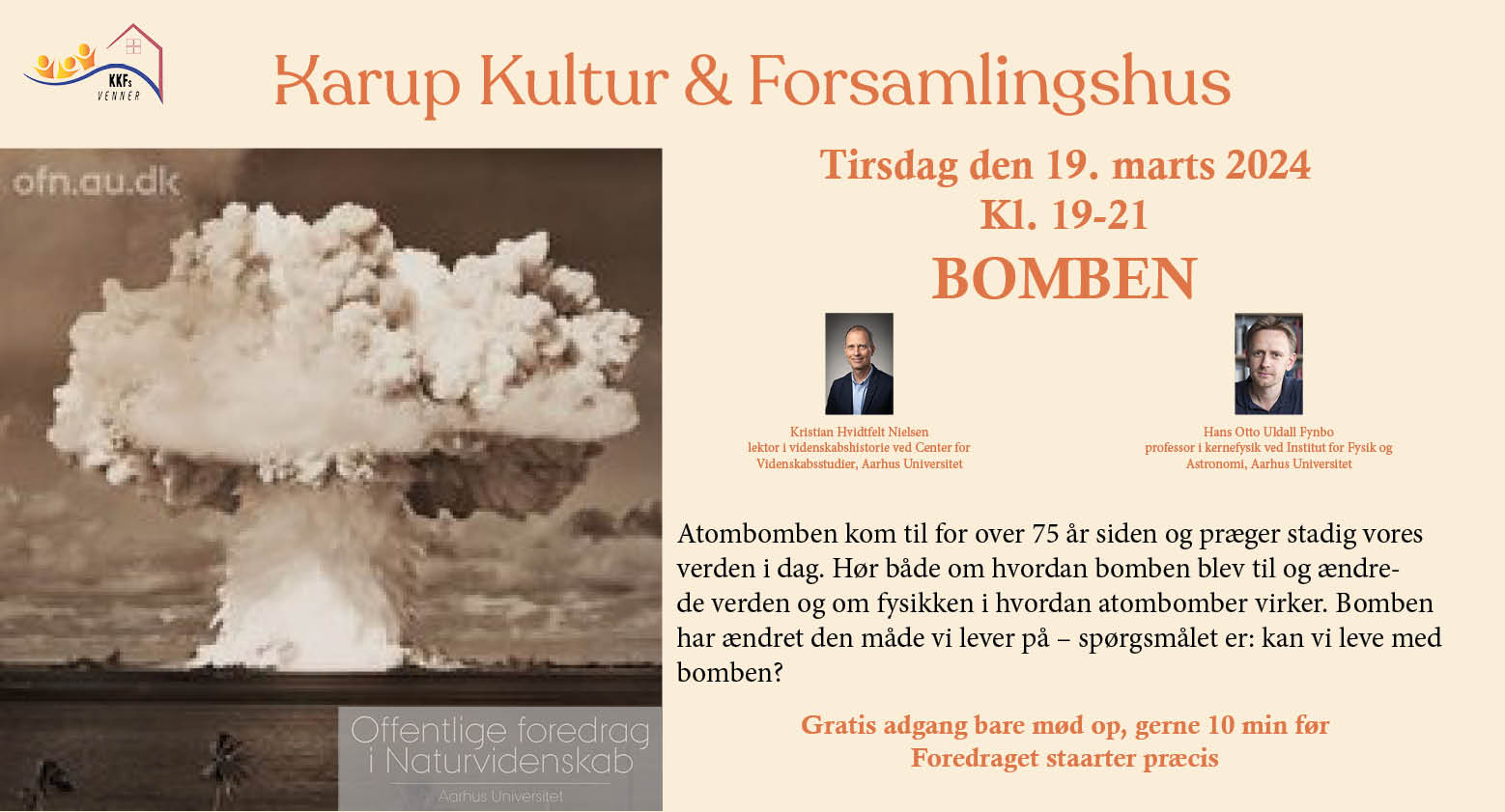 Arrangør: Karup Kultur- og ForsamlingshusDato: 12. mar. 2024 19:00